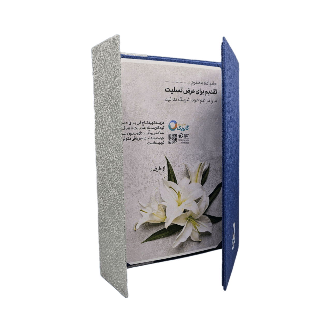 با سفارش نمادهای همدردی گابریک (استند تسلیت، لوح یادبود و کارت تسلیت الکترونیک) تسلی بخش عزیزانمان باشیم و از کودکان مبتلا به دیابت حمایت کنیم.